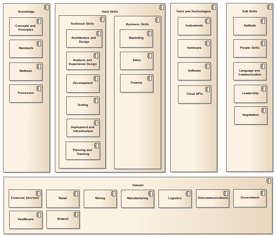In the context of solution development, the word "Skill" is a difficult one. Partly, because the field of solution development is so broad: It includes the business side of running development projects, the creative side of design, the technical aspects of architecture and engineering and even quality assurance.